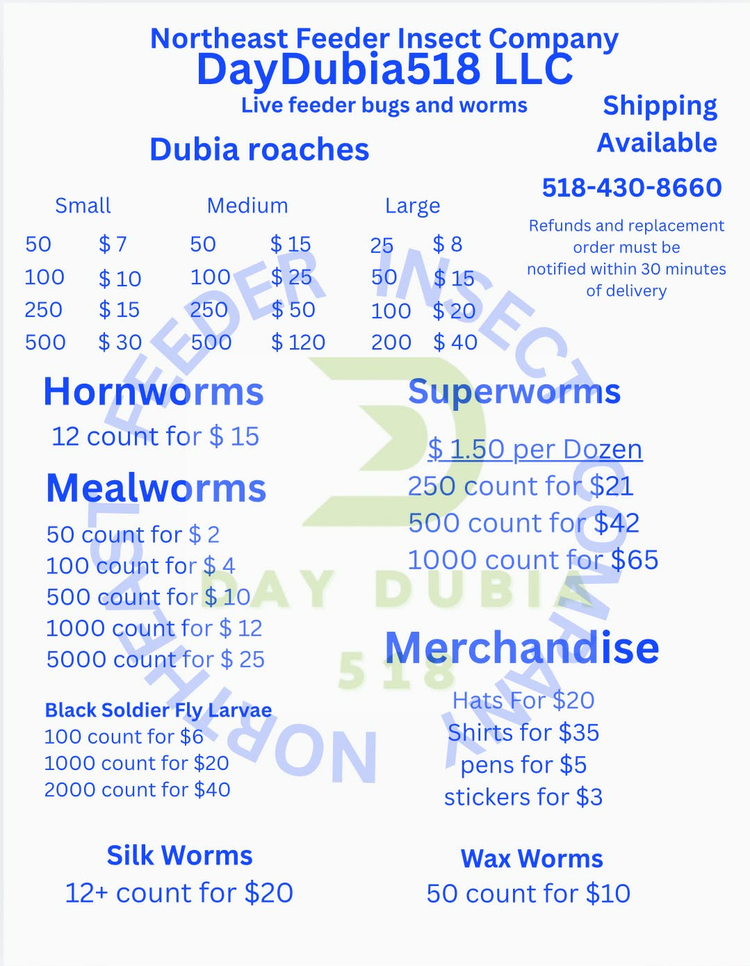 From dubia roaches to hornworms, mealworms, black soldier fly larvae, and more — we supply what your animals thrive on.